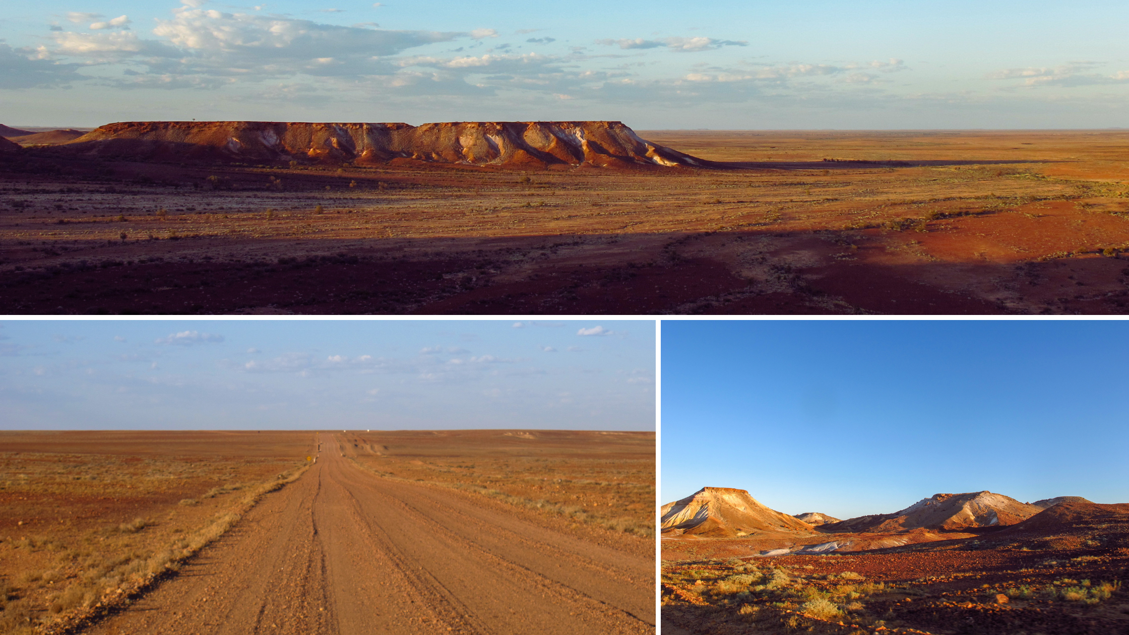 A więc podróż. Australijski Outback pełen jest oszustwa i niedotrzymanych obietnic. Tak to wtedy widziałam. Myślałam, „to nie może być tylko pustynia, na mapie są przecież jeziora i miasteczka”. Jeziora to słone niecki, mieniące się kryształowymi odblaskami w upalnym, styczniowym słońcu. Gdy na pustyni spadnie deszcz, czasami napełniają się cienką warstwą wody. Styczniowe słońce. Deszcz na pustyni. Australia to oksymoron. I ta droga, cały czas przed nami. Nie ma wzniesień ani zakrętów, nie ma żadnych niespodzianek. Jest tylko monotonia krajobrazu i chromatyczny tryptyk: ochra, błękit, eukaliptus.