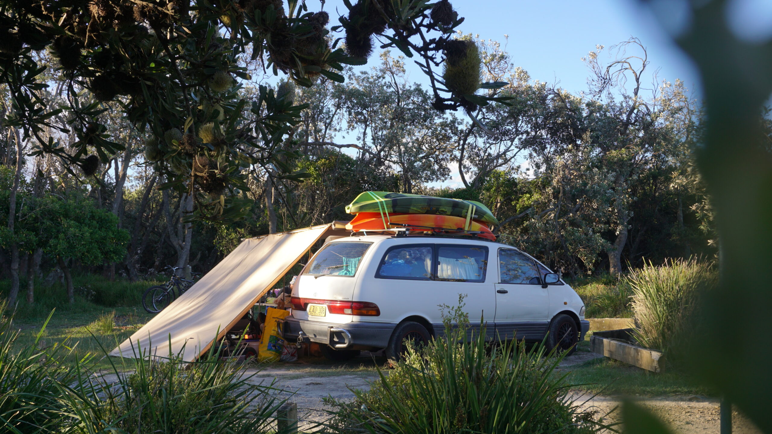 Cały styczeń spędziliśmy jeżdżąc naszym swojskim campervanem po Górach Śnieżnych i południowym wybrzeżu Nowej Południowej Walii. To była wycieczka, która – znowu – według tych wszystkich czarnych prognoz nie miała prawa się udać. Mieliśmy miesiąc wolnego, bo…. w grudniu 2020 anulowała się nam wymarzona podróż na Tasmanię. Byliśmy tak sfrustrowani, że przez kilka pierwszych dni urlopu był foch na cały wszechświat i postanowiliśmy nigdzie nie jechać: w Australii pandemia się dopiero wtedy rozkręcała, pojawiły się lockdowny, granice stanowe zostały zamknięte. Równocześnie grudzień i Nowy Rok to (w normalnych okolicznościach) bardzo popularny czas w turystyce – wakacje, lato. Zarezerwowanie czegokolwiek graniczyło z cudem, bo wszyscy w Sydney wybierali te same miejsca na alternatywny urlop, gdy wszystko inne nie wypaliło. Ale po kilku dniach nam przeszło i znów powiał „kolorowy wiatr”. Tak nazywam to uczucie, kiedy pojawia się w środku nieodparta chęć przygody, zmiany. Tak jakby wołały dalekie krainy. Adventure is calling and I must go. Nie mogliśmy się temu oprzeć. Pojechaliśmy na totalnym spontanie, w przeświadczeniu, że wrócimy do domu po 4 dniach, a zostaliśmy… 4 tygodnie. Wbrew wszystkiemu, za każdym razem udawało nam się znaleźć jakieś przyjemne miejsce na nocleg. Dzięki tłumom w miejscach znanych, odkryliśmy miejsca nieznane, takie jak mniej uczęszczaną, „alpejską” trasę na Górę Kościuszki (Main Range Track) albo ogromne Eucumbene Lake, nad którym po deszczu rozświetliła niebo tęcza, a całe stada kangurów skakały przez wysokie trawy jak w jakimś surrealistycznym filmie, a ja płakałam z zachwytu, że świat jest taki piękny. Potem, jadąc przez wilgotny las deszczowy pachnący jurajskimi paprociami i widłakami, dotarliśmy do nadmorskiego miasteczka Tathra, gdzie jeździliśmy szlakami MTB podziwiając odradzający się las eukaliptusowy (Tathra dwukrotnie ucierpiała podczas pożarów buszu w ostatnich latach). Zielone listki dawały nadzieję. Po drodze do domu zachwycił nas Park Narodowy Mimosa Rocks, tam są naprawdę jedne z najpiękniejszych plaż w całej Australii. To była piękna podróż.
